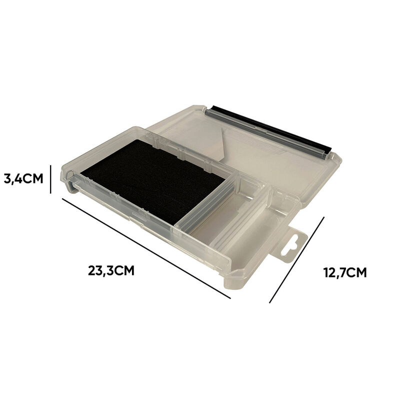 La Versus Slit Form 820ND est un superbe étui en plastique pour vos fournitures de pêche. Cet étui à couvercle articulé comporte un insert en mousse pour accrocher vos leurres et un petit compartiment pour les autres fournitures de pêche. Cette section est dotée de deux séparateurs amovibles permettant de varier la taille des compartiments.