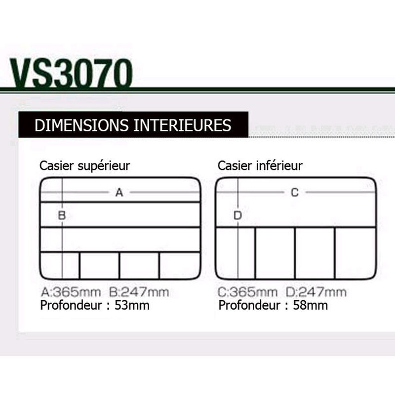 La Versus VS-3070 est une mallette en plastique de qualité supérieure pour vos articles de pêche et vos fournitures. Cette grande valise comporte deux zones de stockage avec de multiples compartiments et séparateurs. La partie supérieure du couvercle est moins profonde et comporte 12 séparations amovibles. Cette section est idéale pour les petits leurres, hameçons, poids et matériel de pêche. La partie inférieure de la mallette comporte 4 séparations amovibles et est idéale pour les articles plus volumineux tels que les lignes, les moulinets, les gros leurres et autres articles. Les deux sections se ferment à l'aide d'un couvercle à charnière qui reste fermé grâce à deux solides loquets de fermeture à rabat. Le VS-3070 est une mallette de style mallette et est livré avec une poignée de transport confortable pour rendre le transport aussi facile que possible.