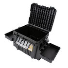- 2 plateaux amovibles en plastique emboîtés sur le dessus