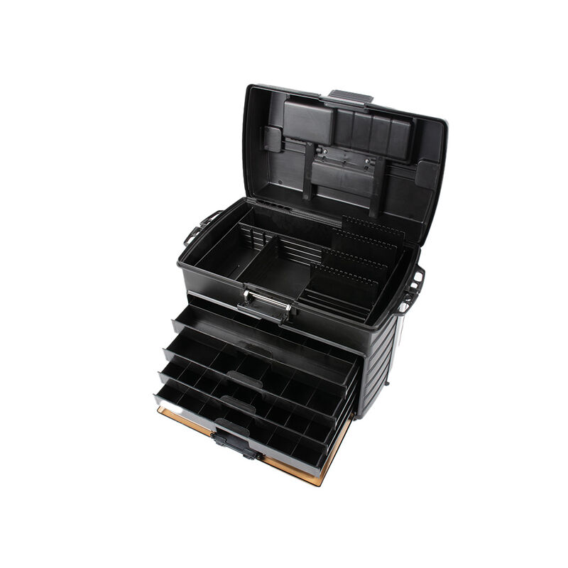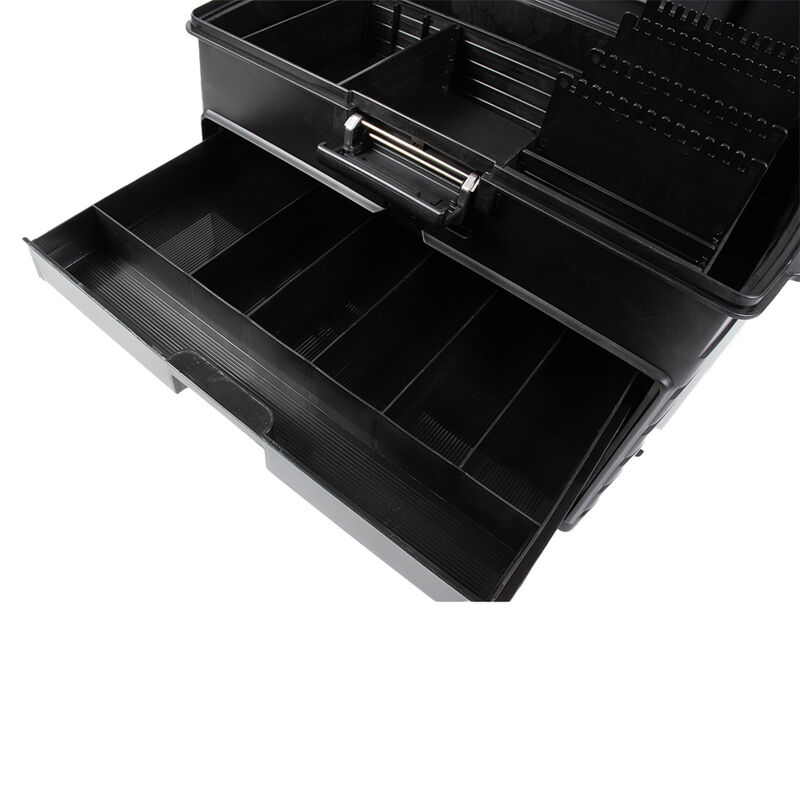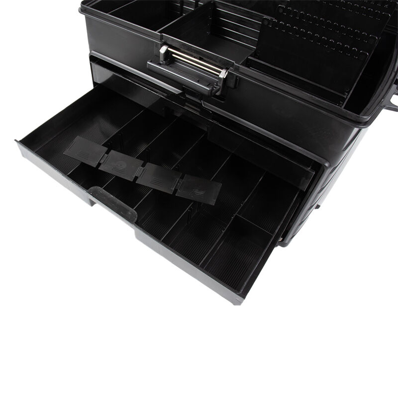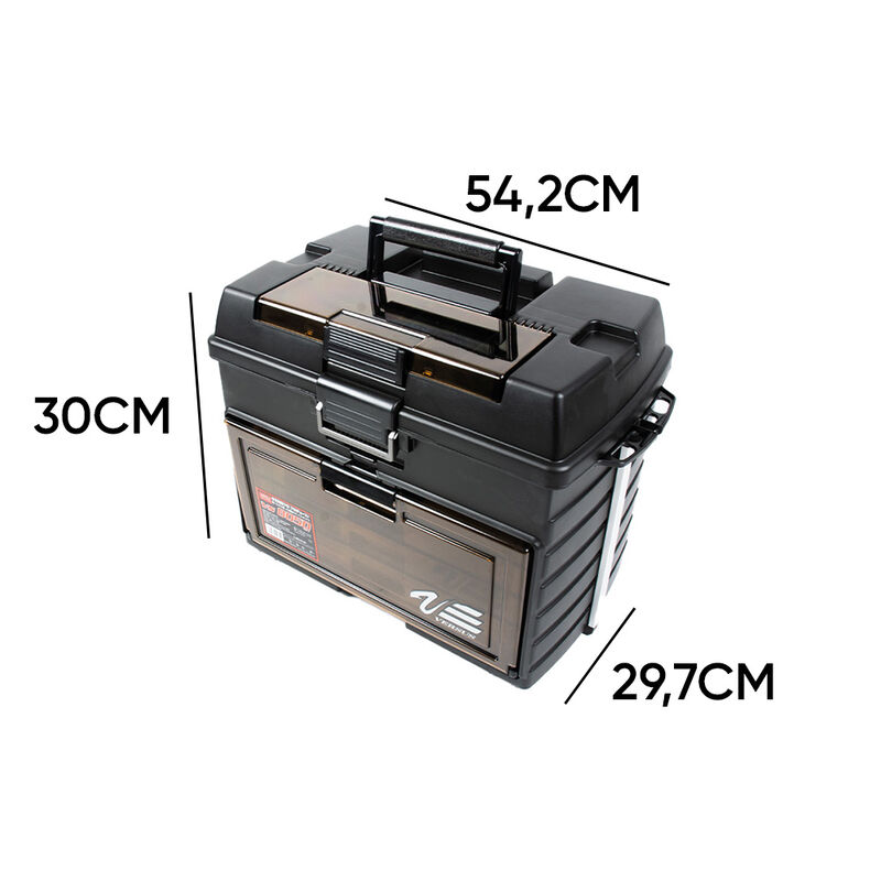 Vous avez un tas d'articles de pêche et de petit matériel que vous devez ranger dans votre garage ou votre abri ? Ou peut-être avez-vous un grand voyage à venir et vous voulez juste être préparé. Alors vous êtes tombé sur la bonne page car la boîte à pêche VS-8050 est faite pour vous ! Cette grande caisse de rangement en plastique pour la pêche se décompose en 3 sections. La première est une petite zone d'accès rapide à l'intérieur du couvercle qui comporte 4 diviseurs fixes et 4 amovibles. Cette zone est idéale pour tout ce que vous pouvez avoir besoin de saisir rapidement comme des hameçons, des poids ou des leurres. La zone suivante est une zone de stockage plus grande à l'intérieur de la valise elle-même. Cet espace de rangement est idéal pour vos articles plus volumineux ou vos leurres de pêche, car il comporte 7 séparations amovibles et 4 avec des encoches pour crochets afin que vous puissiez suspendre vos leurres et vos montages. Enfin, nous arrivons aux tiroirs. Il y a 4 tiroirs coulissants à l'avant de la mallette de pêche qui ont chacun une variation de diviseurs fixes et amovibles afin que vous puissiez vraiment personnaliser vos zones de stockage. La VS-8050 dispose également d'une poignée de transport confortable et de plusieurs loquets de fermeture qui maintiennent tous les compartiments fermés pendant le transport.