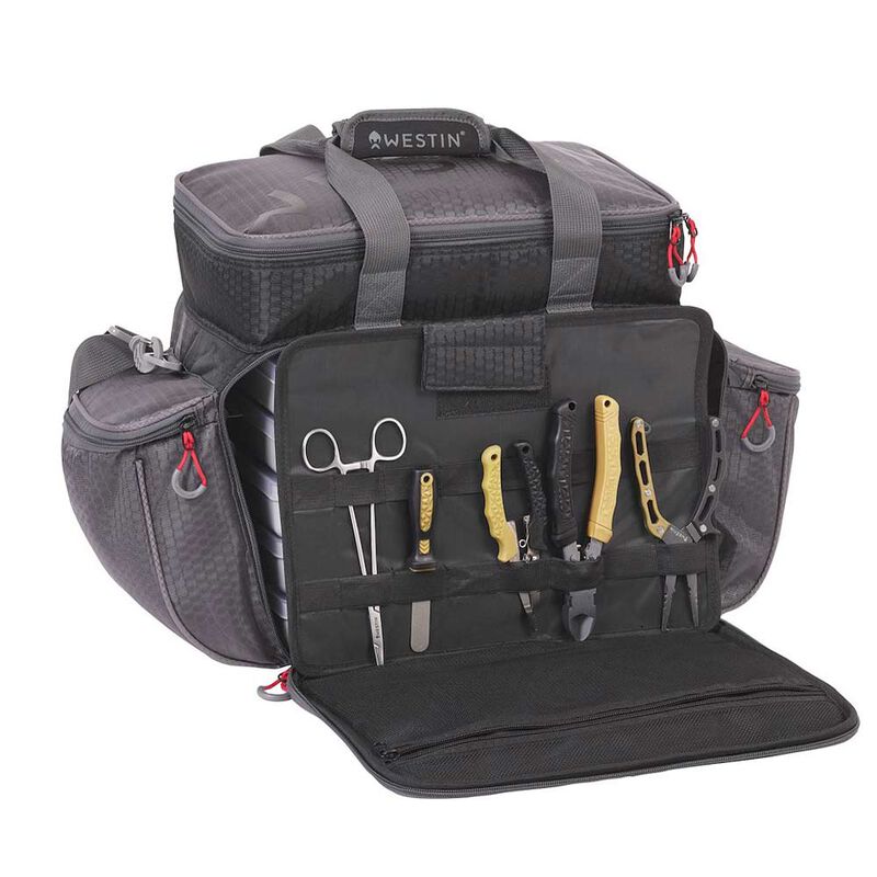 Le W4 Master Lure Bag est la solution parfaite pour tout organiser. Le compartiment principal comprend des boîtes à leurres et, à l'avant, vous trouverez une plaque d'organisation pour vos outils. Le compartiment supérieur est équipé de deux séparateurs amovibles et réglables. Le W4 Master Lure Bag dispose d'une grande poche en filet, de grandes poches latérales pour les accessoires, de poignées de transport et d'une bandoulière rembourrée amovible.