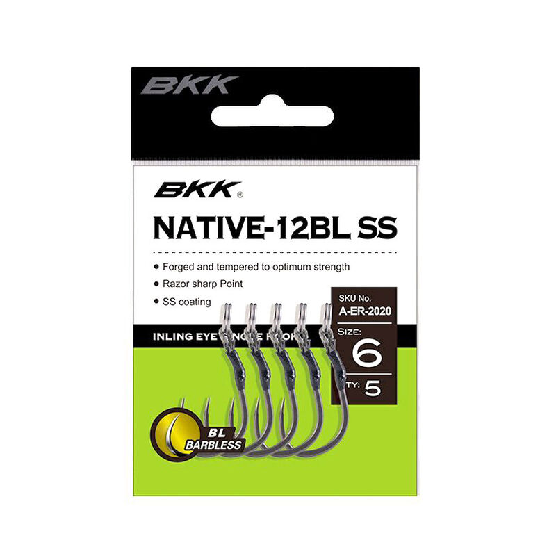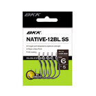 Le BKK Native-12 est un hameçon monté sur assist développé pour remplacer les triples et les hameçons simples courants lorsque la réduction des forces de torsion est la plus nécessaire. Les caractéristiques comprennent une pointe tranchante tournée vers l’intérieur pour assurer le meilleur rapport ferrage /prise , une force d’acier puissante pour une résistance accrue et le revêtement SS super lisse pour une pénétration rapide .