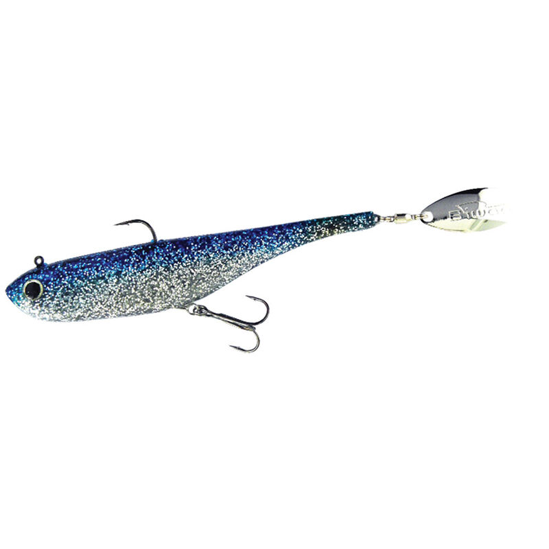 Ce leurre souple brochet hybride est composé d'une tête plombée moulée à l'intérieur d'un corps souple de type shad et d'une palette tournante sur la queue du leurre.