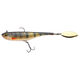 Ce leurre hybride est composé d'une tête plombée moulée à l'intérieur d'un corps souple de type shad et d'une palette tournante sur la queue du leurre.