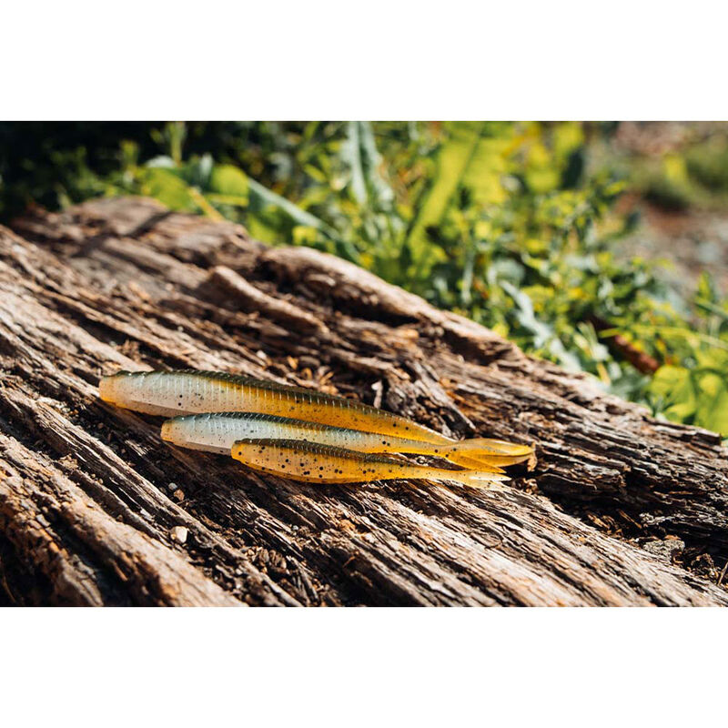 Ce dernier présente un corps fin reprenant la silhouette d’un poisson fourrage et arbore une queue en V à plat. Ce profil très naturel est une véritable gourmandise pour nos carnassiers, la seule limite de son utilisation sera votre imagination ! Si ce dernier se relève être d’une grande efficacité sur tête plombée classique, c’est également équipé d’un hameçon texan qu’il dévoilera sa superbe en pêchant façon “soft jerkbait”, en imprimant des petites tirées sèches pour le faire virevolter de gauche à droite.
