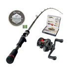Un ensemble canne + moulinet fourni d'une tresse et d'un pack de leurre big bait pour débuter dans les meilleures conditions en casting. En effet la canne du haut des ses 1m98 est parfaitement adapté pour les pêches en bateau et float tube mais également du bord. La longueur de la canne vous permettra d'être précis dans vos lancés. De plus cette canne sera également éfficace pour les jerkbait et les leurres souples de 15cm. Le moulinet conçu pour les lancés précis il est donc idéal pour la canne. Et enfin une box de leurres afin que le pack soit prêt à pêcher. Et la tresse offerte pour garnir le moulinet.
