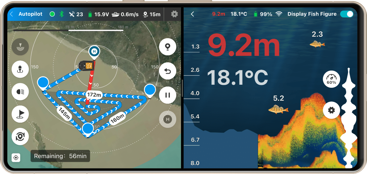 Contrôle d'écran partagé pour votre bateau amorceur et votre détecteur de poissons