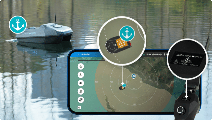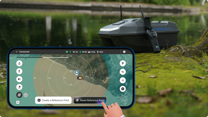N'ayez crainte ! La fonction de sécurité du bateau amorceur CatchX Mini GPS vous permet d'éviter ces accidents. Gardez le contrôle même lorsque des défis inattendus surviennent.