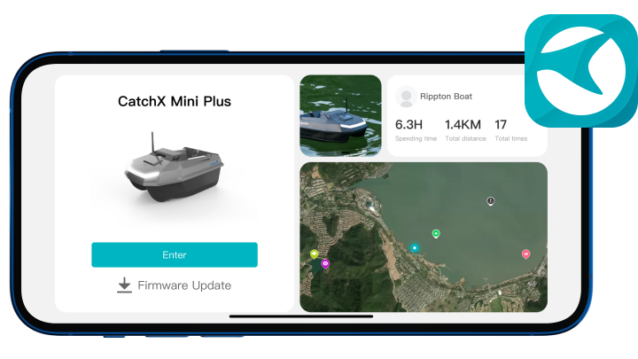 L'application intuitive Rippton Boat offre un contrôle simplifié sur le bateau amorceur CatchX Mini GPS. Appuyez et glissez simplement, et vous êtes prêt !