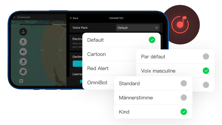 Packs vocaux amusants offerts Support multilingue : anglais, français, allemand