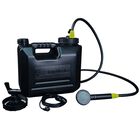 Ce pack contient le jericane 10L et le kit douche :le bouchon relié à la pompe (le bouton on/off , la connectique d'alimentation et la connectique du tuyau de douche), le cable d'alimentation alume cigarre (qui peut donc fonctionner sur un power bank vault de la gamme ridge monkey), un flexible d'environ 2m, un kit d'attache (pour vous permettre de fixé la poire de douche en hauteur), la douchette avec une tête orientable et la notice d'utilisation.