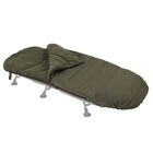 Enfin, la forme arrondie de ce sac de couchage épouse parfaitement la forme du corps et du bedchair, ce qui évite les déperditions de chaleur.