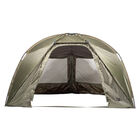 Pensé pour limiter la condensation et améliorer la ventilation, il dispose de deux grands panneaux arrière en mozzi mesh et d’un vapour shield amovible. Sa structure repose sur un centre boss compact et extrêmement robuste, complété par une sangle de tension et des détails pratiques comme un crochet interne pour suspendre une lampe ou une centrale. Livré avec les piquets Nash T pegs, il est prêt à affronter toutes les conditions.