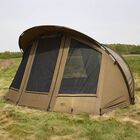 Pratique et bien ventilé, il dispose de fenêtres moustiquaires à l’avant et à l’arrière avec fermeture zip + velcro, ainsi qu’une porte modulable (ouverture par le bas ou en boîte aux lettres) pour s’adapter à la météo. Un bivvy complet, solide et très fonctionnel.