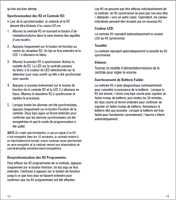 - La centrale réplique automatiquement la tonalité du R2 programmée