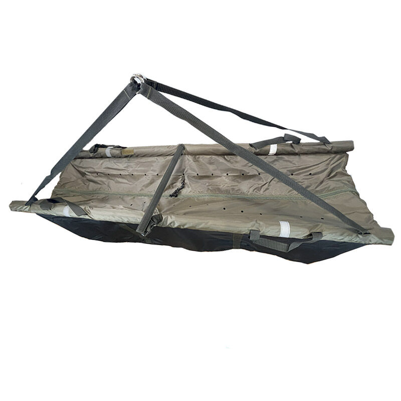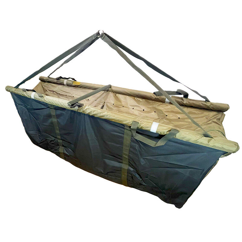 Fabriqué en tissu robuste et résistant, ce sling est équipé de deux gros boudins flottants assurant une parfaite flottabilité, même en eau agitée. Grâce à ses deux fermetures zippées, il est entièrement refermable, ce qui offre une sécurité maximale pour le poisson pendant les phases de conservation ou de pesée. Il intègre également un système de pesée pratique, composé de deux sangles solides et d'anneaux métalliques, permettant une pesée précise et sécurisée. Il est livré avec un sac de transport compact, facilitant le rangement et le transport sans encombrement.