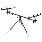 Grâce à ses 3 pieds réglables, il bénéficie d’une stabilité parfaite sur tout type de sol et accepte sans problème des déclivités importantes. Le réglage latéral et l’inclinaison des cannes se fait en un temps record grâce à ses 2 bras de serrage. La barre centrale, réglable, s’adapte à toutes les longueurs de cannes et possède 2 points de fixation pour chaque buzz bar.