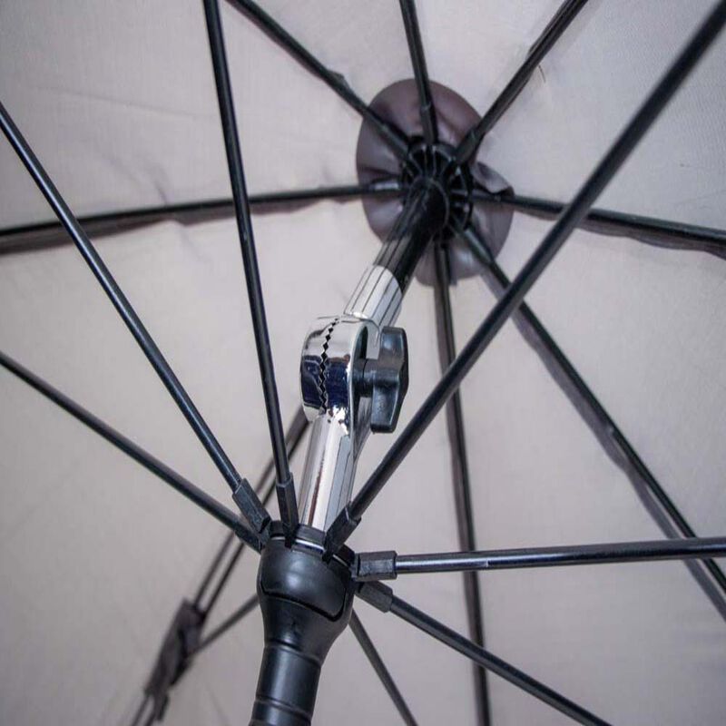 L'avantage majeur de ce parapluie est sa machoire orientable à 90 degrès, elle vous offrira le luxe de vous proteger du soleil tout au long de la journée ou encore du vent tournant lors des froides journées d'hiver.