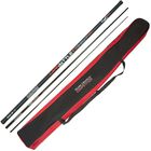 Caractéristiques de la canne : longueur 9.34m, poids 852g, canne en carbone HR, 7 éléments, encombrement 1.60m, Diamètre talon : 40 mm, Diamètre extérieur de l'extrémité du scion : 5 mm, Diamètre intérieur de l'extrémité du scion : 4 mm, Diamètre de la sortie d'élastique latérale "ICE" : 4 mm, Diamètre max élastique plein admissible : 3 mm, Diamètre max élastique creux admissible : 3.8 mm