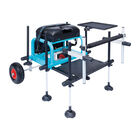 La Station Super Clubest équipée d’un châssis + plateforme repos pieds en aluminium, d’un casier et tiroir de 30mm. La plateforme repose pieds est équipée d’un système antidérapant qui évite de glisser. Munie de 4 pieds télescopiques 400/700mm et de 2 pieds fixes de 400mm qui vous permettront de vous installer partout au bord de l’eau, même sur les berges les plus abruptes. Elle est livrée avec kit chariot avec rues increvables et une desserte en plastique.