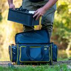 Capacité Spacieuse : Avec son grand compartiment principal et ses poches latérales généreuses, ce sac permet de transporter facilement tout votre matériel de pêche, des feeders aux appâts, en passant par les accessoires indispensables.