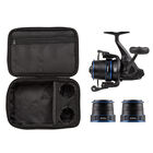 Le PENN Rival Blue Surf Pack a été spécialement conçu pour répondre aux besoins des pêcheurs de surfcasting. Ce pack Surf spécial comprend un Rival Blue 7000 avec 2 bobines de rechange en aluminium usinées et prêtes à l'emploi, ainsi qu'un étui spécial pour moulinet EVA PENN qui protégera votre moulinet et de de rechange pendant le transport et le stockage. La capacité des bobines de rechange légèrement inférieure à celle de la bobine principale (0.23 mm-300 m contre 0,30-300m) ce qui vous permet d'avoir toujours avec vous le bon diamètre de ligne pour chaque conditions de pêche Le Rival lui-même est équipé d'un système de roulement à billes a étanche l'eau de mer, combiné à un roulement anti-retour instantané, vous assurant un fonctionnement parfaitement régulier, même sous pression. Le pack parfait pour tout pêcheur de surfcasting qui recherche un moulinet de qualité à un prix abordable.