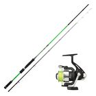 La canne possède un blank en deux éléments égaux en fibre de verre “FGC Concept”, un pommeau caoutchouté, une double poignée en mousse EVA noire, un porte-moulinet tubulaire.