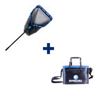 Épuisette robuste et pratique, grâce à sa tête en caoutchouc et son manche télescopique.