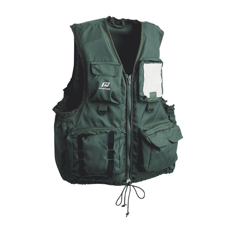 En toile nylon, avec fermeture éclair de qualité supérieure, lacet de serrage avant, deux poches sur la poitrine et deux larges poches ventrales.