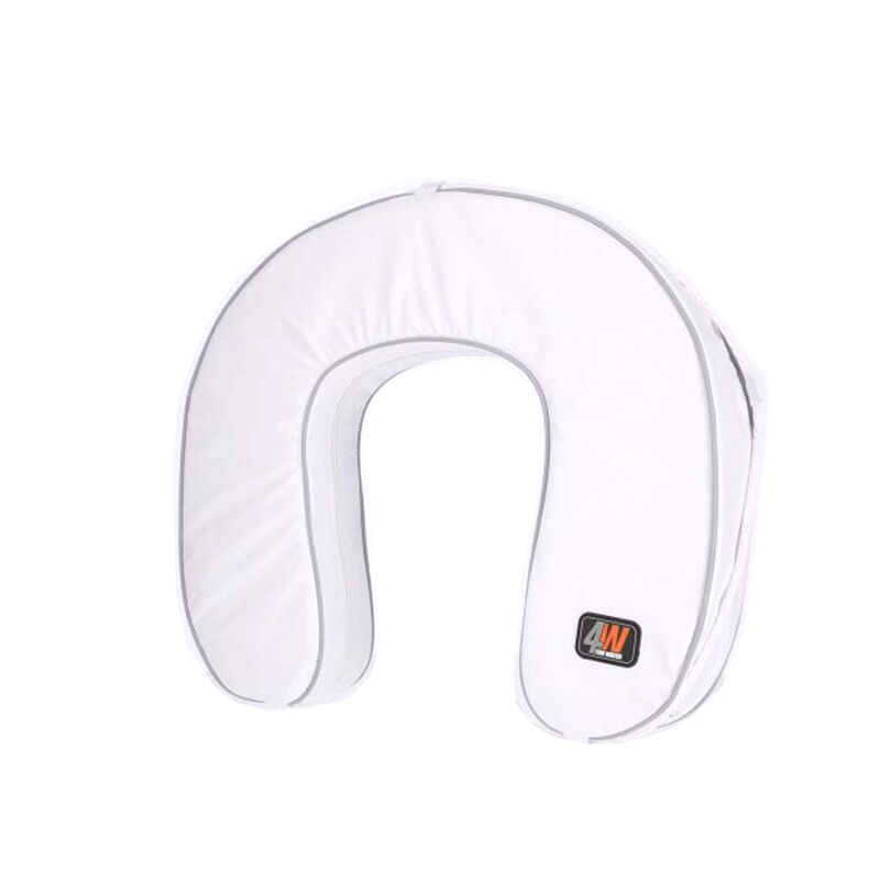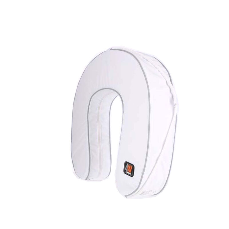 Bouée fer à cheval blanche déhoussable, flottabilité assurée par de la mousse polyéthylène. Housse en tissu lavable haute résistance (1100 decitex, enduction PVC).