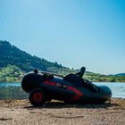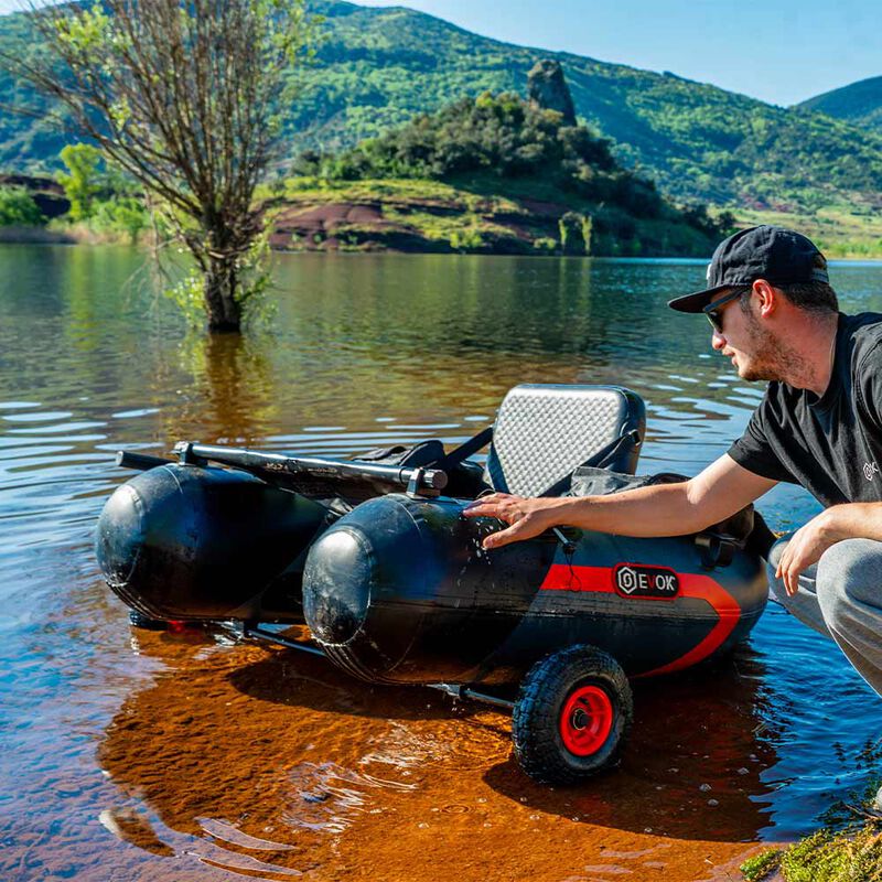 Pour faciliter vos déplacements, le FT 150 est équipé d’un « wheel kit », un système de fixation à roues qui permet de tirer votre float-tube jusqu’au point de mise à l’eau, évitant ainsi de le traîner ou de l’abîmer. Une fois arrivé à destination, il ne vous reste plus qu’à déployer vos équipements : deux poches latérales amovibles, une paire de rames robustes et un porte-canne parfaitement positionné pour un accès rapide à votre matériel.
