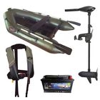 Un Pack bateau pneumatique de 2m30 avec un plancher à lattes équipé d'un moteur électrique d'une puissance de 40lbs d'une batteire 110AH et d'une gilet pour vous permettre de naviguer correctement avec du matériel ou a 2 sur l'eau.
