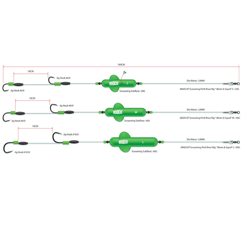 Pensé pour pêcher le silure au posé avec des vers canadiens et des lanières d'encornets, ce bas de ligne silure exprimera pleinement ses qualités dans les zones soumises à fort courant. Son flotteur sous-marin à hélice entrera en effet en action dès lors qu'il est exposé au courant, en émettant des turbulences fortes qui ne manqueront pas de stimuler l'agressivité des silures postés sur la zone.