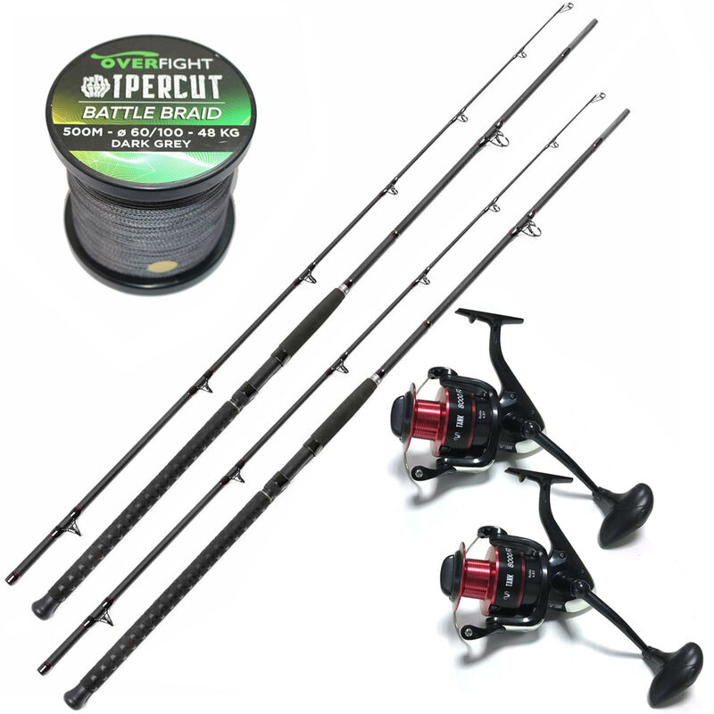 Ce pack contient 2 cannes Tank Batlle 3M ainsi que 2 moulinets Tank 8000 FD et la tresse Ipercut Battle Braid.
