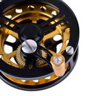 Pour faciliter l’extraction de la bobine, pour la changer ou, dans de rares occasions pour défaire un emmélage dans les engrenages, le démontage de la bobine se fait à la main par l’intermédiaire de 3 vis moletées. Construit entièrement en Aluminium, il est usiné à partir de barres pleines, par commande numérique dernier cri. Son revêtement par anodisation dure permet de protéger l’aluminium des griffures et des petits chocs. Ce LYBERTY NYMPHE 75 est facilement réversible Droitier / gaucher, il suffit pour cela d’avoir un tournevis cruciforme et 5 minutes devant soi.