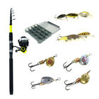 Ce pack comprend la canne et un moulinet déjà garni prêt à être utilisé grâce aux différents leurres et boites qu'il contient.