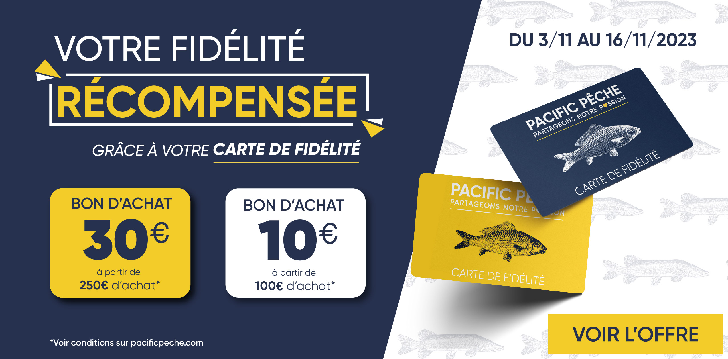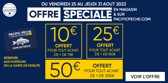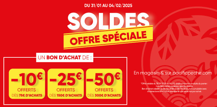 *Offre valable du 03 au 25 décembre 2025 sur une sélection de produits signalés, dans les magasins participants et sur Pacificpeche.com, dans la limite des stocks disponibles. Concernant les Packs de Noël : un ou plusieurs produits inclus dans le pack peuvent déjà bénéficier d’une promotion en cours, en magasin et/ou sur notre site. Le prix du pack reste optimisé pour l’ensemble.