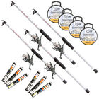 Un pack spécialement conçu pour les pêcheurs de carnassiers aux vifs, avec quatre ensembles Class One Redfish Telestrong 350 Advanced 3.50m 80-150g et son moulinet One 50 RD, quatre bas de ligne en nylon X-Line carnassier 0.40mm et deux kits de 3 lignes montées spécial carnassier.